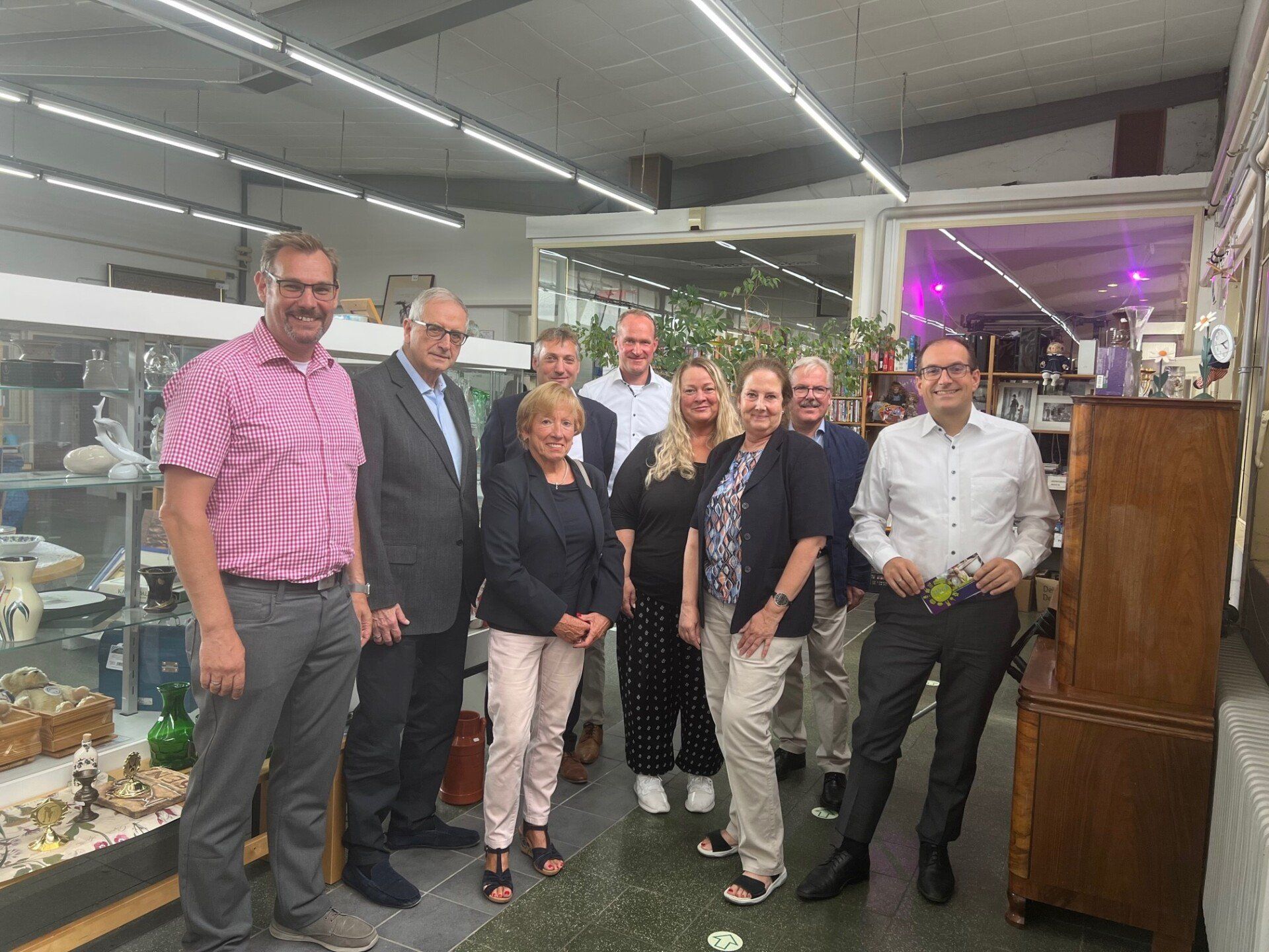 Eine Delegation unserer CDU-Kreistagsfraktion hat das Kaufhaus „Tisch und Teller“ in Flörsheim besucht. Hierbei handelt es sich um ein gemeinnütziges Projekt des regionalen Diakonischen Werkes Main-Taunus in Zusammenarbeit mit dem Main-Taunus-Kreis. Das nachhaltige und soziale Kaufhaus bietet eine große Auswahl an gebrauchten Dingen zu kleinen Preisen – von der Kaffeetasse bis zum Kleiderschrank, sogar Fahrräder können gekauft, aber auch in der hauseigenen Fahrradwerkstatt repariert werden. Da alle angebotenen Waren aus Spenden bestehen, freut sich das Team immer über gut erhaltene Sachspenden.